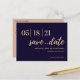 spread the news of your wedding date with this classy navy and blush pink save the date card. with a modern combination of bold type with script font this is on trend but also timeless