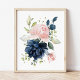 Navy and Blush Watercolor Flowers, Girl Nursery Poster