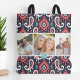 Navy and Coral Ikat Paisley Family Photo Monogram Tote Bag