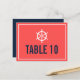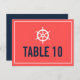 Dark navy blue and coral thank you card with a white helm illustration. This is perfect for nautical themed weddings or sea and ocean themed weddings.