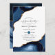 Navy blue and faux gold glitter agate stone wedding engagement party with elegant handwriting typography customisable to your event specifics.