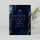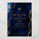 Cool watercolor agate Bat Mitzvah invitation in accents of navy blue and gold customisable to your event specifics. A portrait format photo is recommended.