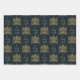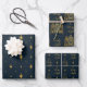 Here we have a lovely wrapping paper sheet set perfect for the holiday season. The first sheet features metallic gold stars on a navy blue background. The second sheet features the words "O Holy Night" and ornamental three wise men in gold on navy blue background. The third sheet in the set features the words "O Holy Night" in gold on a navy blue background.