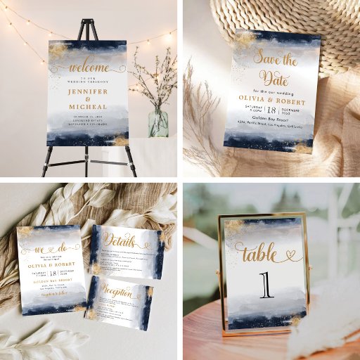 Navy and Gold Wedding Ceremony Invitation. This stylish & elegant Wedding Shower Invitation features gorgeous hand-painted Ombre Watercolor. Find matching items in the Navy and Gold Collection.