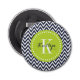 Custom printed bottle opener with a preppy chevron pattern. Personalise it with your monogram initial or other custom text in a chic circle frame. Click Customise It to change fonts or add your own text and images to create a unique one of a kind design.