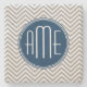 Navy and Grey Chevron Pattern Custom Monogram Stone Coaster