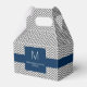 Navy and Grey Chevron Pattern Monogram Wedding Favour Box