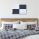 Two navy rectangles and two grey rectangles form a chequered pattern in this clean digital design. It has a bold but classic look to it.