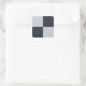Two navy rectangles and two grey rectangles form a chequered pattern in this clean digital design. It has a bold but classic look to it.