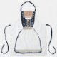 Fun apron done with graphics of a German navy blue and ivory dirndl dress, the traditional dress for Austria, Switzerland and Germany. Graphics of lace, damask, flowers and ribbon lacing adds a realistic feel to this pretty apron. Great for a hostess at an Oktoberfest party.