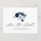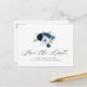 navy and light blue floral save the date postcard