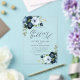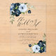 watercolor navy blue and light blue flowers with a gold frame and elegant text. The colours and text can be personalised.