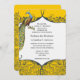 Navy and Mustard Peacock Love Bird Pattern Wedding Invitation