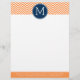 Navy and Orange Chevrons with Custom Monogram Personalized Letterhead