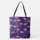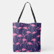 Navy and Pink Flamingo Pattern Tote Bag