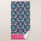 This custom made-to-order bath towel set has a trendy ikat paisley pattern in navy blue, pink and turquoise colours. Personalise it with your monogram name and initial or other custom text. Use the design tools to edit the text fonts and colours or upload your own photos to create a unique custom set of bath towels. The set includes a coordinating bath towel, hand towel and wash cloth or select individual towel sizes as needed.