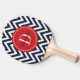 Navy and Red Chevron Monogram Ping Pong Paddle