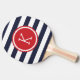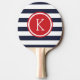 Navy and Red Preppy Stripes Monogram Ping Pong Paddle