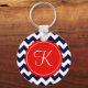 Navy and Red Zig Zag Custom Initial Key Ring