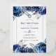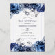 Cool watercolor floral Bat Mitzvah invitation in accents of navy blue and silver customisable to your event specifics.