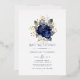 Cool watercolor wash Bat Mitzvah invitation in accents of navy blue, silver and gold customisable to your event specifics.