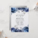 Navy and white floral long distance baby or bridal shower by mail invitation with accents of silver.