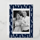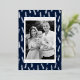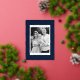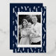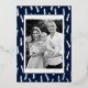 Modern Thanksgiving card featuring your photo framed in white with a background of navy and silver foil foliage. Personalise the foil Thanksgiving card with your custom greeting, family name, and year in bold silver foil lettering. The photo Thanksgiving card reverses to display your custom message in white lettering with a navy background.