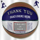 Navy Blue (change all navy colours) and Silver Team Photo or Logo (Delete to expose design), Personalised Basketball for Coach. Full Size custom basketball is shown or choose the personalised Mini basketball. Type in Coach Name, ALL PLAYERS NAMES, TEAM, YEAR or YOUR TEXT or Delete. These customisable basketballs, in my opinion, are great, basketball coach present ideas. CALL Designer Linda: 239-949-9090 ET for HELP or I can REDESIGN the basketball before you order. Any Colour Combinations. I can also design other, custom basketball coach gifts, gifts for basketball players, seniors and basketball party supplies. Free custom design service. Consider these some of the best, basketball coach appreciation gifts.