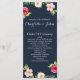 navy and silver watercolor flowers wedding programme