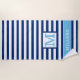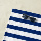 Striking cabana stripe beach towel with navy blue ,sky blue and white striped pattern. Personalise with your monogram and family name.