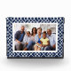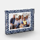 Display a favourite family photo in elegant style with our preppy chic freestanding acrylic block. Design features your horizontal or vertical photo framed by a bamboo lattice pattern in classic navy blue and white.