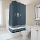 Our simple and elegant shower curtain adds a dose of chic, classic style to your bathroom, in dark navy blue with a five stripe bottom border in crisp white. Personalise with a three initial monogram in the centre, making this shower curtain a beautiful and unique gift for newlyweds or new homeowners.