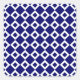 A bold, graphic pattern of interlocking navy and white diamond shapes. The white diamonds each contain a small dark blue diamond making navy the dominant colour of the geometric design.