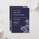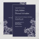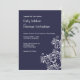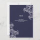 A Navy and White Elegant Style Wedding Invitation designed with white decorative accent on a navy background, front and reverse. The invitation cover side text includes: The Bride and Groom's Names, Wedding Date, Time, Location and Reception Note. The reverse side text includes: RSVP and your RSVP Details. To personalise, simply insert your text into our easy template, replacing the sample. Be sure to view the entire Navy and White Elegant Style Wedding Collection for matching cards and accessories.