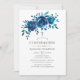 Navy indigo and white floral confirmation invitations designed to be quickly and easily customised to your event specifics.