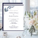 An Elegant Navy and White Floral Leaf Wedding Invitation designed on a white background with navy borders and soft flowing watercolor floral. Text includes the Bride and Groom's Names, Wedding Date, Location, and Reception Details. The reverse is a matching classic Navy coloured background. To personalise, simply replace the sample text using our easy template. Be sure to view the entire Navy and White Floral Leaf Wedding Collection for matching stationery.