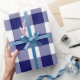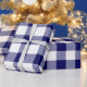 Dark blue, white, and light blue squares form a bold, buffalo plaid. The navy and white gingham pattern reminds me of classic decor.
