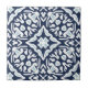 Accent your Mediterranean style decor with these ceramic tiles featuring an intricate geometric pattern in coastal navy blue, sky blue and white inspired by the traditional azulejo tiles of Spain and Portugal.