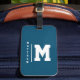 Modern navy and white monogram luggage tag.
