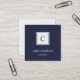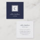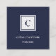 Chic and professional navy blue and white square business card design features a modern square element holding your single initial monogram, with your name and title or business name beneath in contemporary lowercase serif lettering. Personalise the reverse side with your contact details in matching navy. A contemporary choice for any occupation; sample shown for realtors or real estate agents.