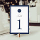 Navy and White Monogram Table Number Card