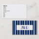 An elegant monogrammed business card with a simple navy and white pinstripe. There are note cards, stickers and postage stamps to match.