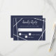 A clean contemporary design in navy blue and white with minimalist appeal, this wedding RSVP card conveys a modern minimalist style. White geometric lines surround your text over a navy blue background. Personalise the response date with your required date.