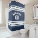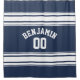 Navy and White Sports Jersey Custom Name Number Shower Curtain
