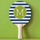 Navy and White Striped Pattern Green Monogram Ping Pong Paddle