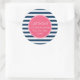 Navy and White Striped Pattern Hot Pink Monogram Classic Round Sticker