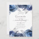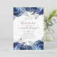 Navy and white flowers quinceanera invitation with silver faux foil and elegant handwriting typography.