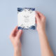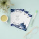 Navy and white flowers wedding invitation with accents of silver.