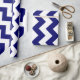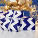 Alternating rows of navy and white zigzags make up this bold graphic pattern. The dark blue and white design was digitally designed from scratch.