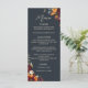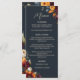 This wedding menu features a deep navy backdrop and vibrant autumnal blooms that exudes elegance and charm. Easily edit the menu items and display this beautiful design on each plate! Plus, it's fully customisable, allowing you to add a personal touch to your special day. Be sure to check out all of the matching wedding items in this collection!